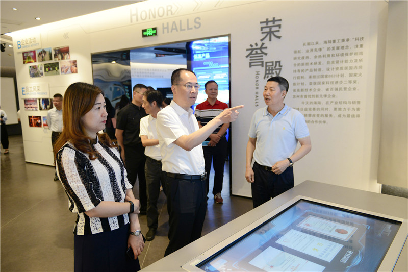 張家港市市委副書(shū)記、代市長(zhǎng)韓衛(wèi),副市長(zhǎng)汪雨等領(lǐng)導(dǎo)參觀海陸重工展廳